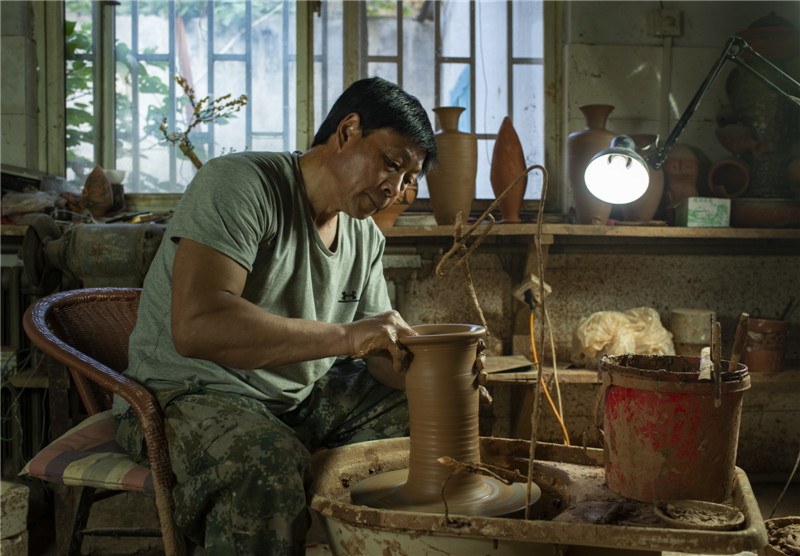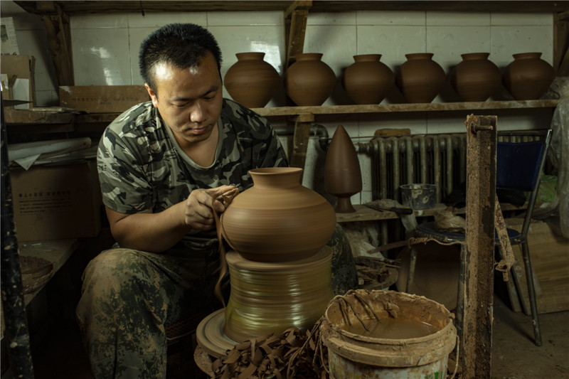 選用優(yōu)質(zhì)陶土,加上一把黃河泥,經(jīng)過打磨、雕刻、燒制等系列工序后,搖身一變成了一個(gè)古色古香的彩陶。河南仰韶科技開發(fā)有限公司總經(jīng)理、仰韶彩陶傳承人劉新安說(shuō),“我們?nèi)慷际侨斯ぶ铺?,秘法作業(yè),滿輪拉坯成型,天然無(wú)機(jī)顏料彩繪,差不多整個(gè)制作過程要兩周左右。”